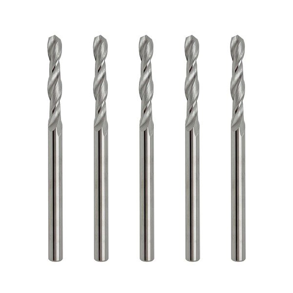 5/32" Solid Carbide Jobber Drill Bits with Straight Shank and 118° Point Angle, Made from Tungsten Carbide Material,5-Pieces