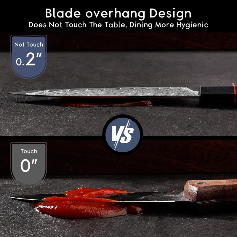 • Well Designed: The full-tang handle, crafted from G10 composite, offers superior stability to traditional wood or plastic handles. Its ergonomic design ensures a comfortable grip, G10 guarantees long-lasting durability and food safety.