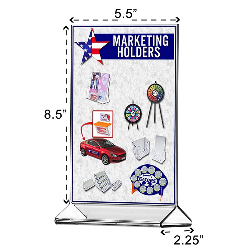 • Acrylic Frame Holds 5.5"w x 8.5"h Signage. Each sign holder is made with quality materials.
