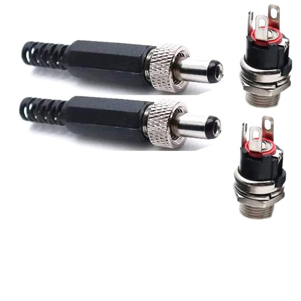 5.5mm x 2.1mm Male DC Power Plug Connector & Screw Lock Female Panel Socket Mount Adapter, Sets of 2