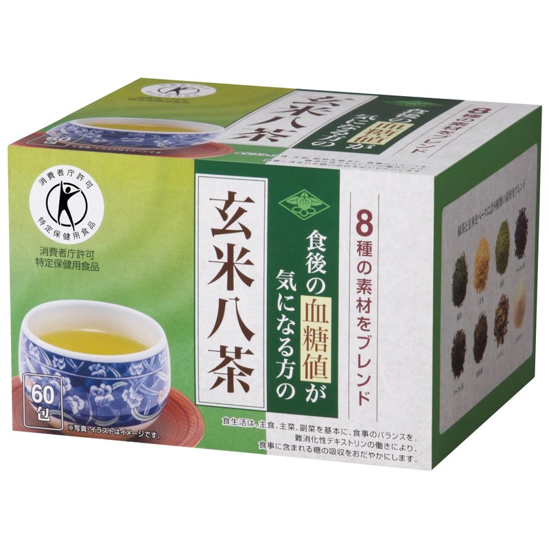 食後の血糖値が気になる方の玄米八茶 5.6g×60包 日本製 特定保健用食品 血糖値 上昇 穏やか 糖質制限 吸収 抑制 水溶性 食物繊維 緑茶 抹茶 ウーロン茶 プーアル茶 杜仲茶 ドクダミ クマザサ お茶 健康食品 トクホ