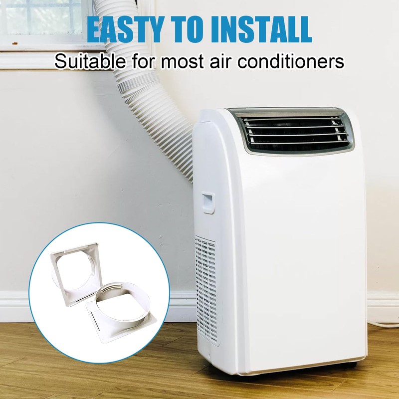 - Fits Most 5.9"Hoses:Window Adapter AC Connector Fits on the back of many portable Air Conditioner units. Goes from square, to fit down to 5.9" diameter exhaust hose. Fits both Clockwise and counterclockwise hoses.