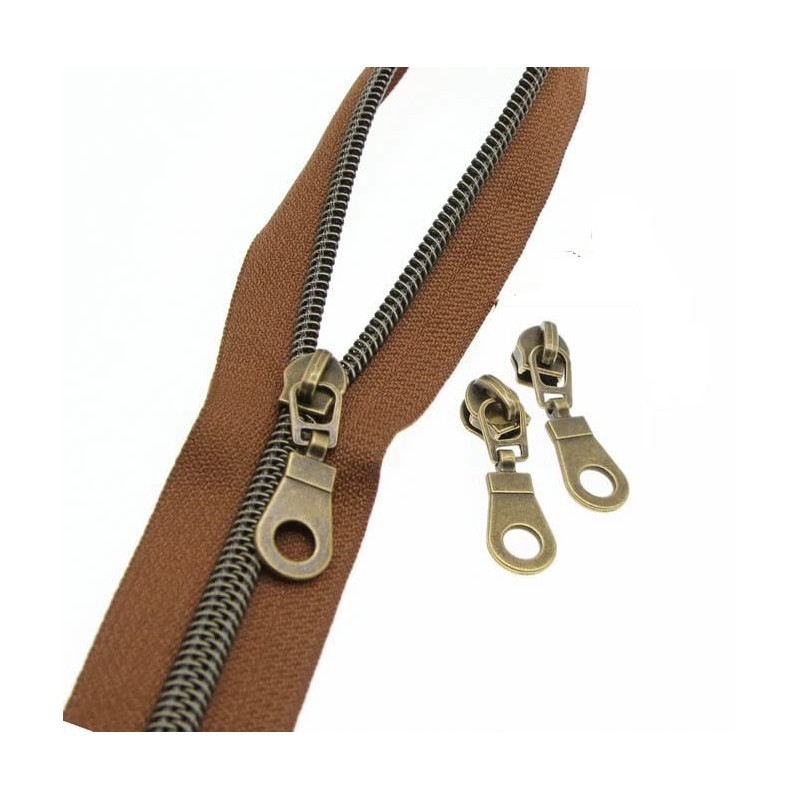 10 Yards Zipper by The Yard - Metallic Teeth Zipper(Brown Tape, Antique BrassTeeth) - 25 PCS Antique Brass Zipper Sliders YIGUANXIN