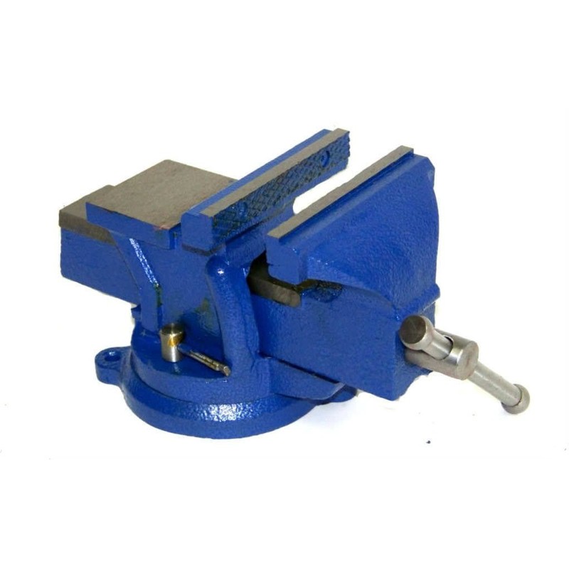 Heavy Duty 5" Bench Vise with Anvil Swivel Locking Base Table top Clamp Heavy Duty Steel Serrate steel jaws Oversized striking anvil Heat treated shaft 3 Down slots 360° Double locking swivel base Precision crafted and designed to provide dependable service and satisfaction Industrial quality Heavy duty cast steel construction Hardened and polished replaceable jaws and large anvil Swivel base allow you to get the angle on your workpiece