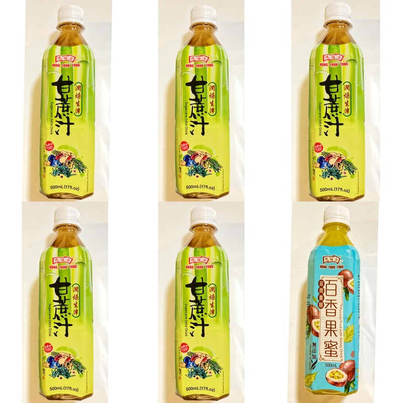 5 Bottles Hung Fook Tong Sugarcane Juice Drink And 1 Bottle Hung Fook Tong Passion Fruit with Honey Drink ( 17 Fl Oz Each)