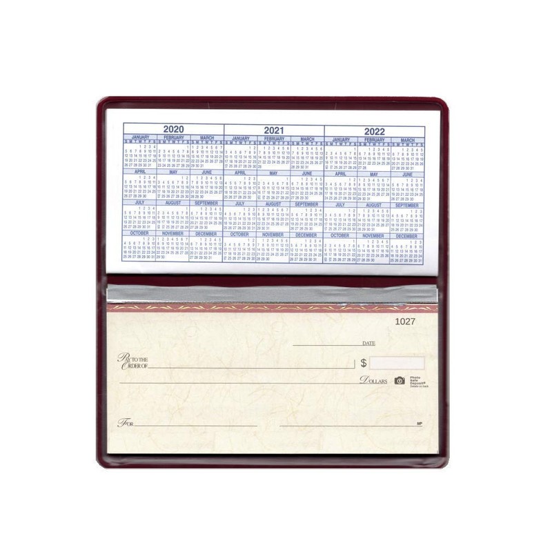 - Vinyl cover has a functional, multi-slot interior for duplicate checks and registers
