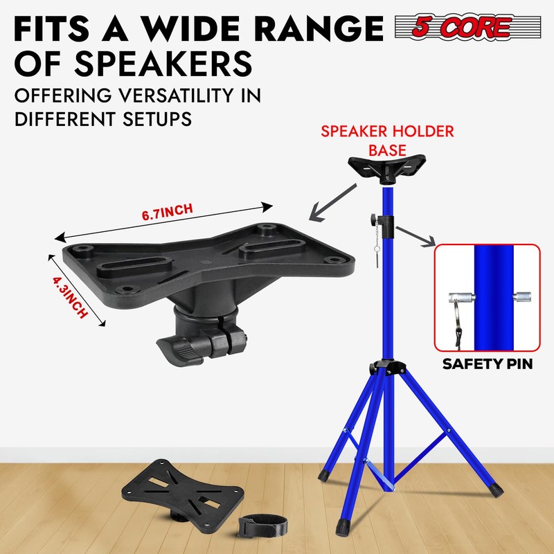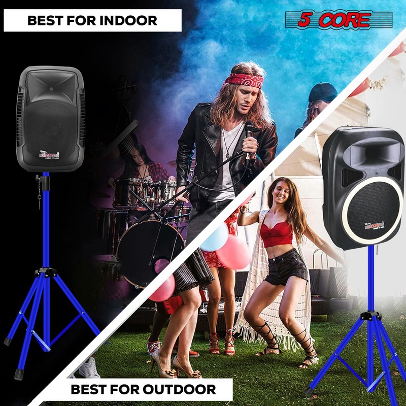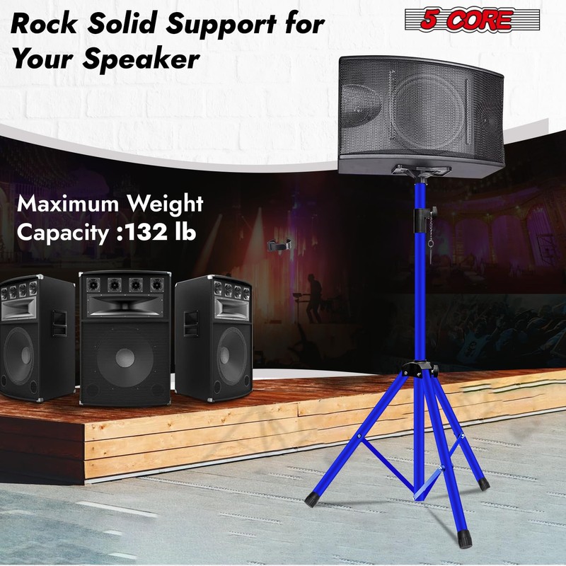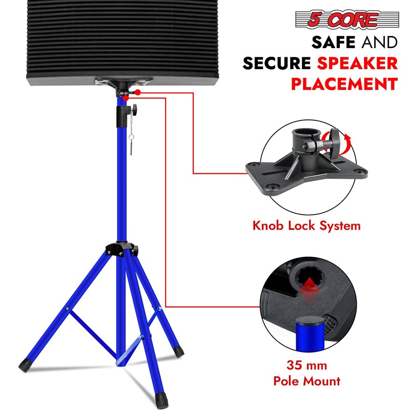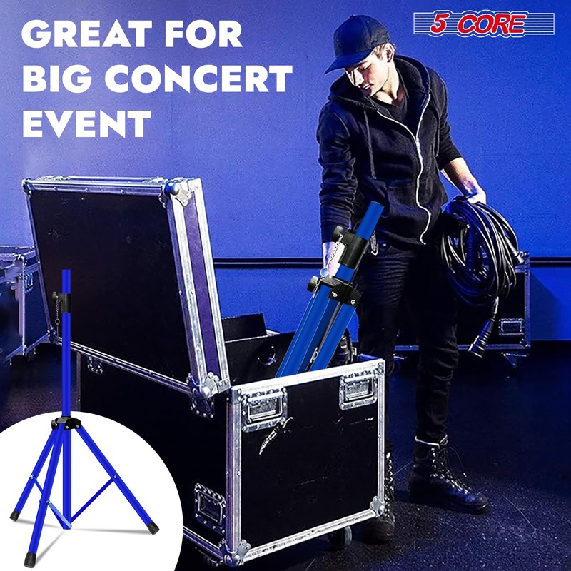 5 Core Speaker Stand Pair Tripod Floor Heavy Duty Adjustable Up to 72 Inch DJ Studio Monitor Stands Pole Mount - SS HD 2 PK BLU Bag