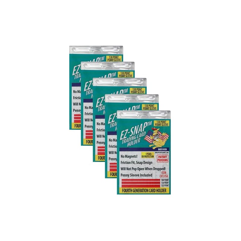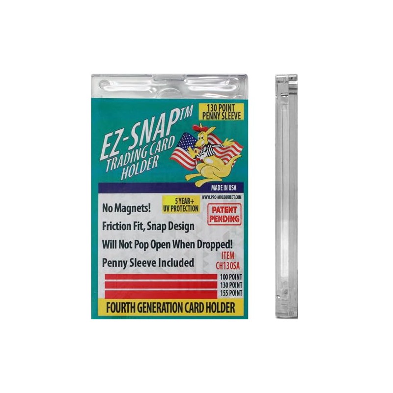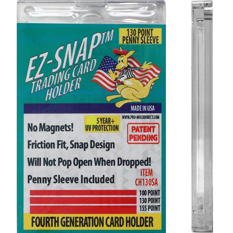 - Fits a Standard (2.5"x 3.5") Sleeved Trading Card up to 130 pt. Thickness. Protect your Baseball, Basketball, Hockey, Football Cards. Pro-Mold EZ-Snap Trading Card Holders are compatible with Pokemon, MTG, Yugioh Cards and much more. - Penny Sleeve Included