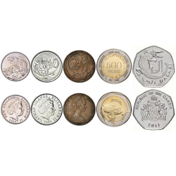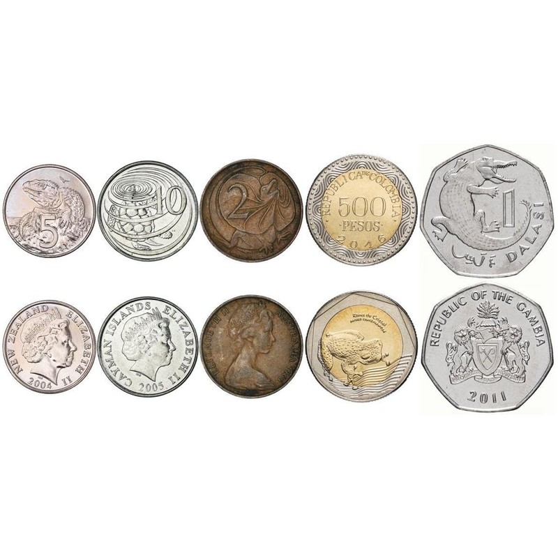 5 Different Coins With Reptiles and Amphibians - Turtles Crocodiles Lizards Frogs - Exotic Wildlife Collectible Coin Set
