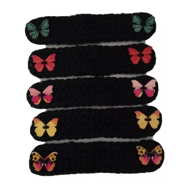 5 Ear Savers Crochet Ear Protector Face Mask Extender MEDIUM BUTTERFLY Black