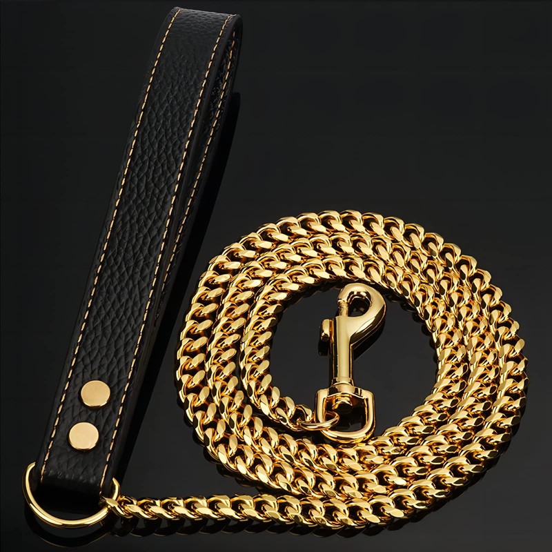 1× Gold Dog Chain Leash (Without Dog Collars)