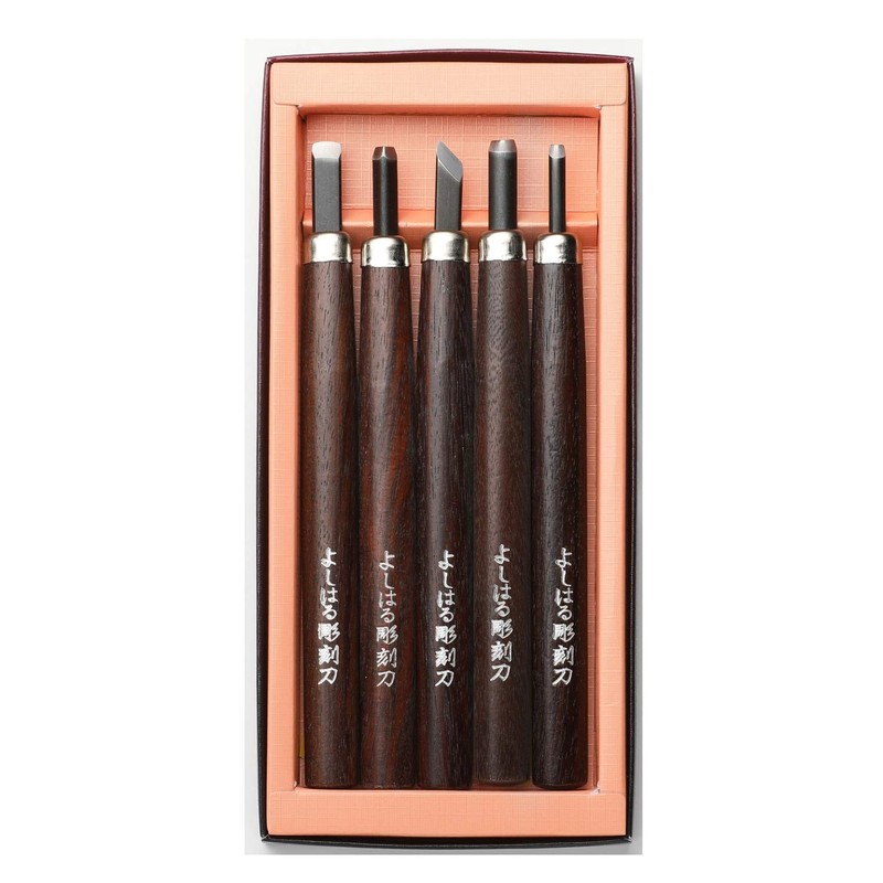 義春刃物 高級 付鋼製 よしはる彫刻刀 紙箱入 5本組 H-5