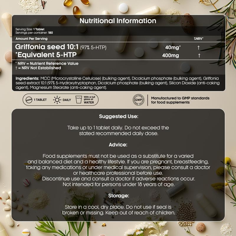 5-HTP High Strength | 6 Months Supply | 180 Tablets | 400mg | Sleep, Anxiety, Stress & Mood | 5HTP