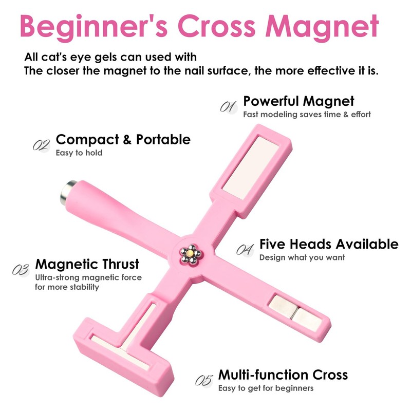- 5 in1 Cat Eye Magnetic Nail Tools: BORNBYME upgraded multi-functional Cat Eye Magnet contains 5 different magnetic heads, which can create 5 different cat-eye effects, you can use 1 stick to finish your various pursuits of cat-eye nail art styles