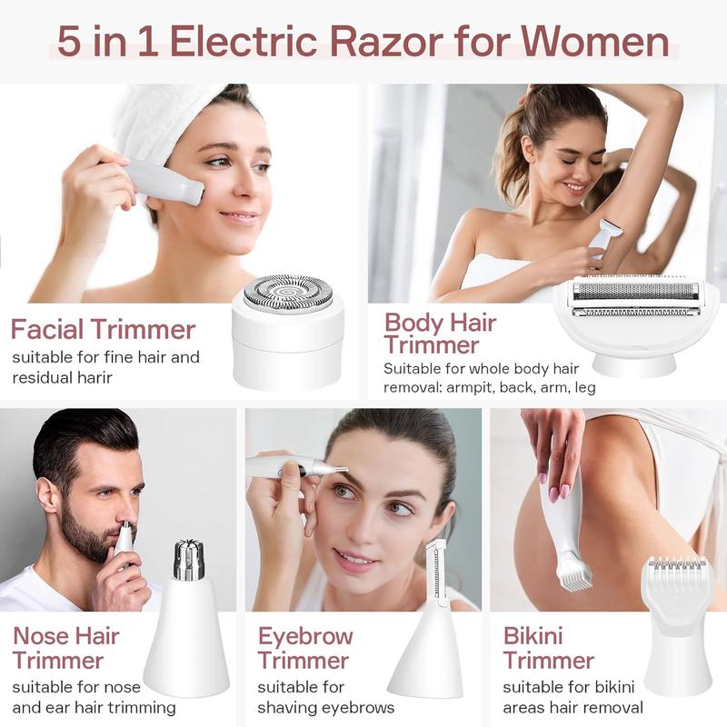 5 in 1 Electric Hair Removal Tool, 1 Box USB Rechargeable LCD Display Hair Trimmer & Accessories, Waterproof Hair Removal Tool for Women