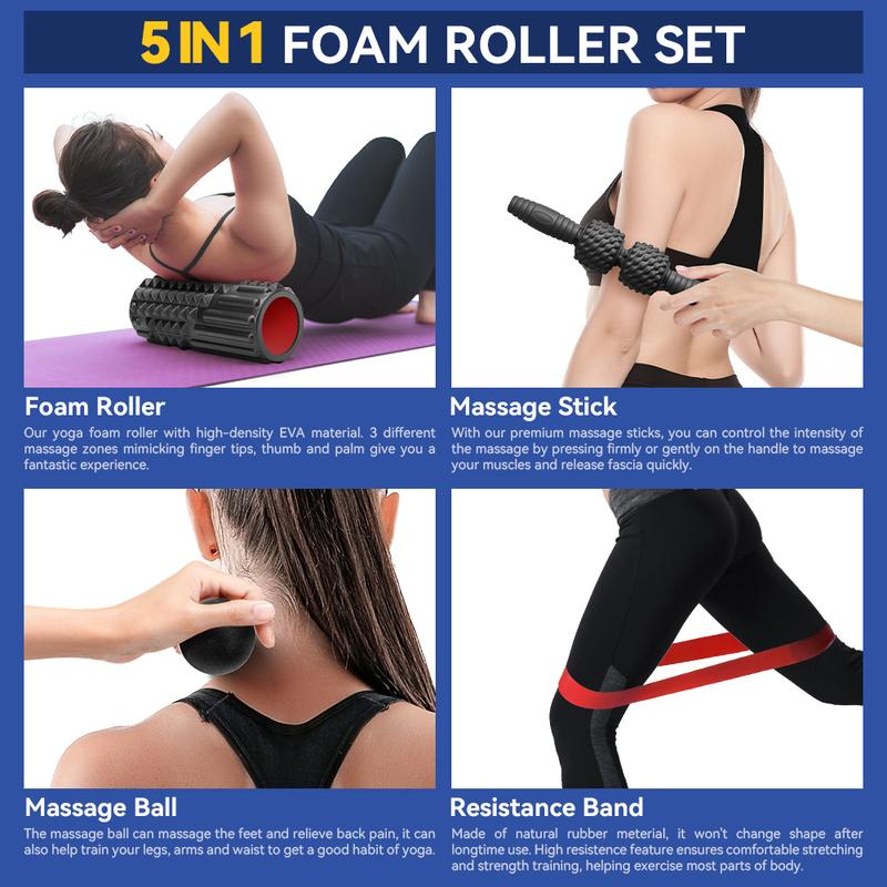 5 in 1 Foam Roller Set, Trigger Point Foam Roller Yoga Exercise Roller for Physical Therapy & Deep Tissue Muscle Massage