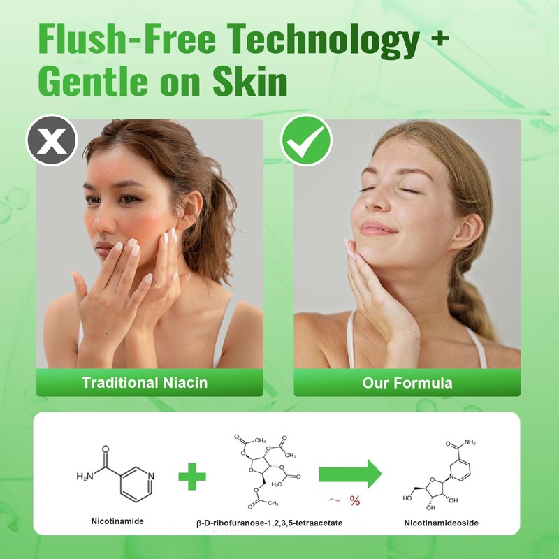 - ✅ Flush-Free Vitamin B3: No "niacin flush" with stabilized Nicotinamide + Nicotinamide Riboside
