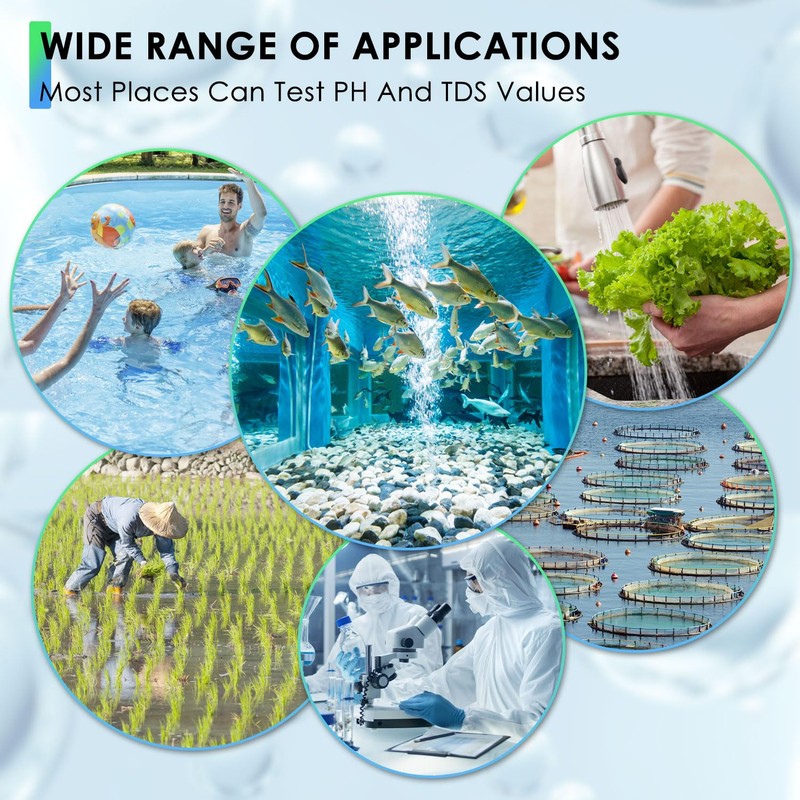 - 【Wide Application】This PH meter is suitable for a wide range of applications. Whether you want to test the pH of your drinking water, wine, or even hydroponic nutrient solutions, this device can handle it all. It is also ideal for testing saltwater pools, ensuring that the salt levels are within the recommended range.