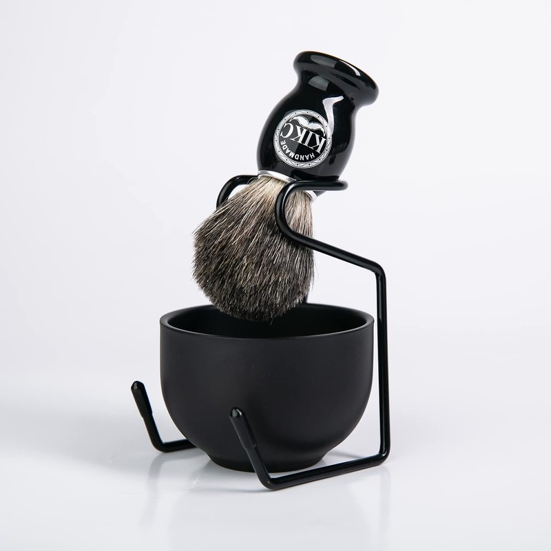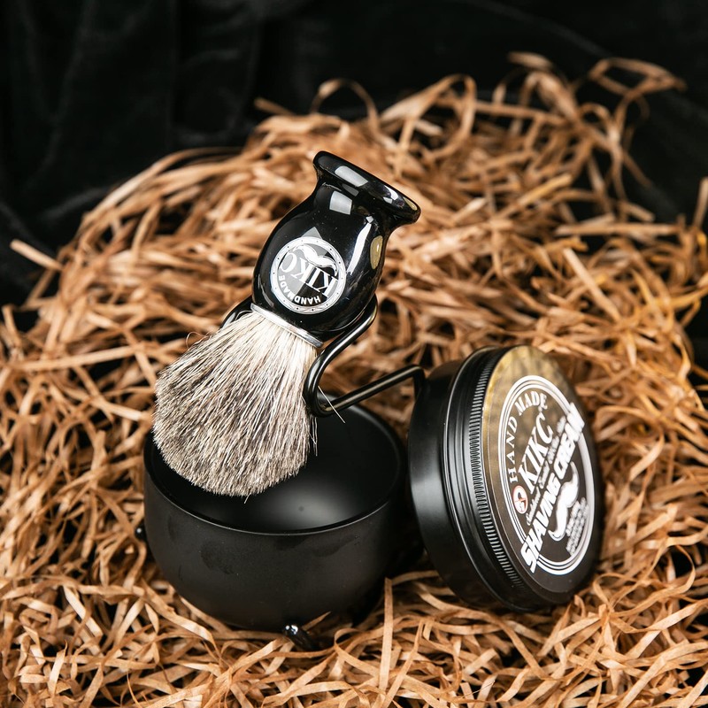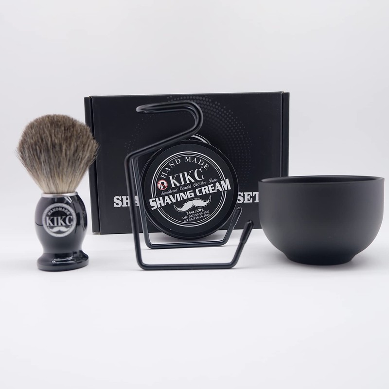 - Premium Stainless Steel Suit - Made of high quality stainless steel, the stand and metal bowl surface are brushed with high quality black paint, durable and suitable for your daily use. Package Contents: 1 shaving cream, 1 shaving rack and headset and 1 shaving brush , stainless steel, rust and corrosion resistant, durable.