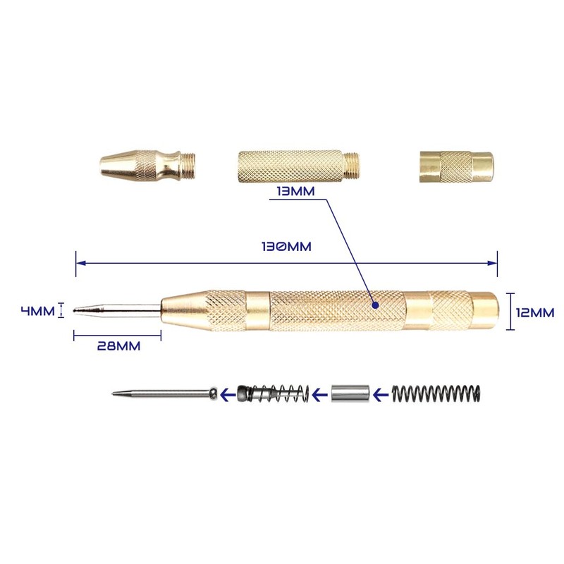 • This 5-inch automatic center punch tool makes it easy to mark materials such as wood, plastic, metal, glass and leather.