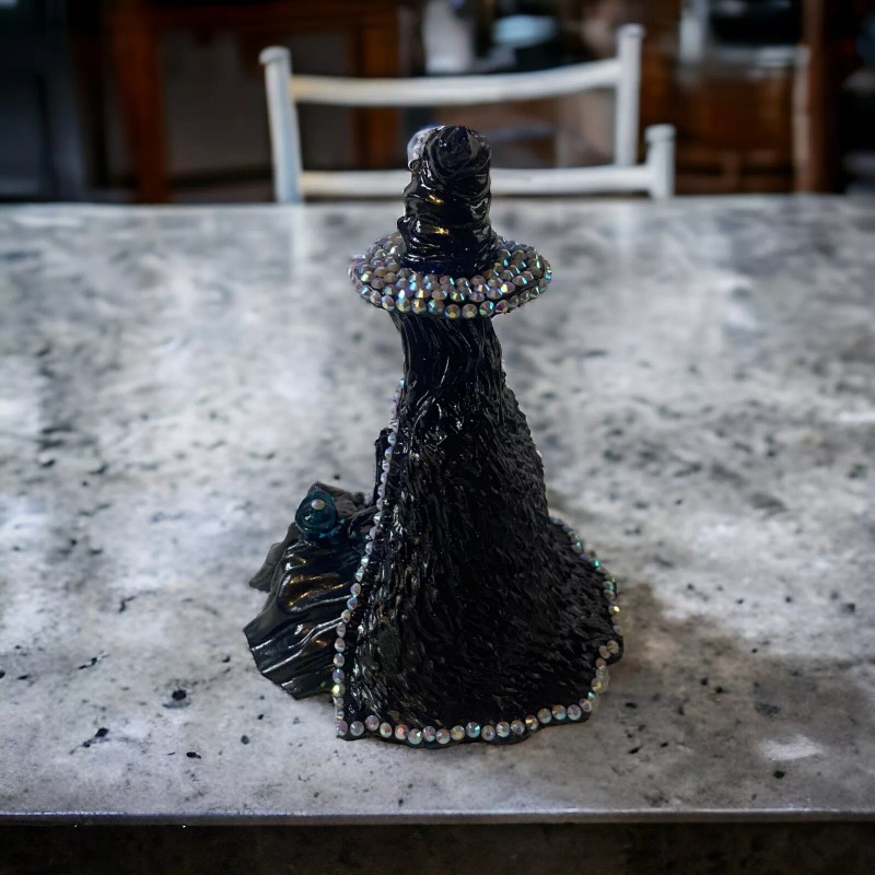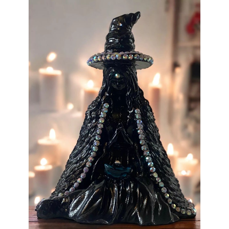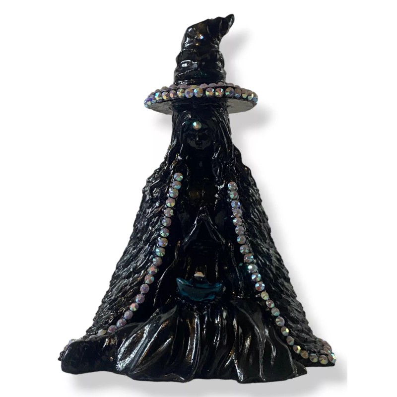 Embrace the mystical with this stunning 5 inch Black Witch figure, perfect for any lover of Wicca and Paganism. The intricate design features a pencil holder hat adorned with sparkling rhinestones, adding a touch of glamour to any workspace or altar. Invoke the power of the witch with this unique and enchanting piece, perfect for both display and practical use.