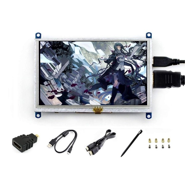 5 Inch TFT LCD Display B 800 x 480 Raspberry Pi Resistive Touch Screen HDMI Module for Raspberry Pi, BeagleBone Black, PC Support Raspbian Ubuntu Kali Retropie Windows 10 IOT/ 10/8.1/8/7