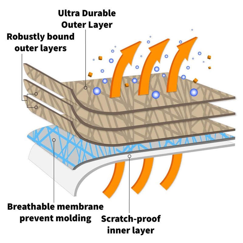 - Structure of 5 Bonded Layers; heavy-duty outer layer; double cushioning padded layer; protective supporting layer(layer 1, 2, 3 is robustly bonded with a high level of adhesion.); soft non-scratch inner layer (fleece lining).