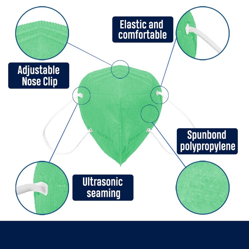5-Layer Disposable Face Mask Made in USA | Improved Design | 95%+ Filtration Efficiency with Comfortable Ear Loop and Soft to Touch Materials | 10 Units (Mint Green)