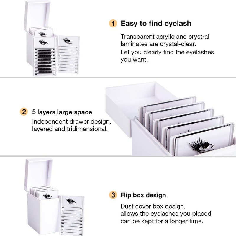 • The 5-layer design with big capacity and useful. Suitable for storing your eyelashes and tools.