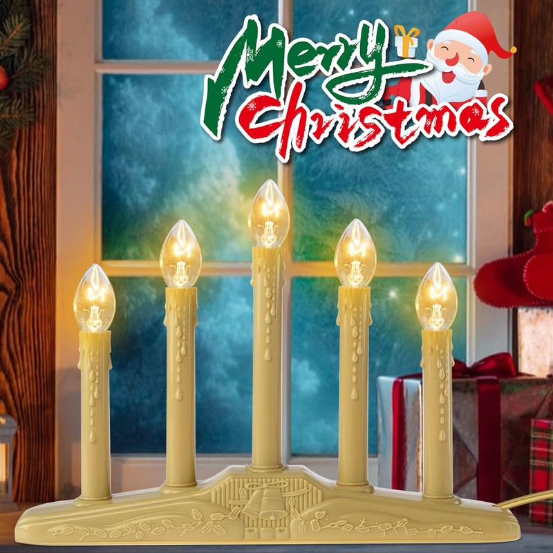 - 🕯️Christmas Candle Light:5 Light Christmas electric window candles lamp have 6 Clear C7 light bulbs(1 spare bulb).Vintage Ivory Candle Lights suit for Christmas window home holiday decorations and lighting.