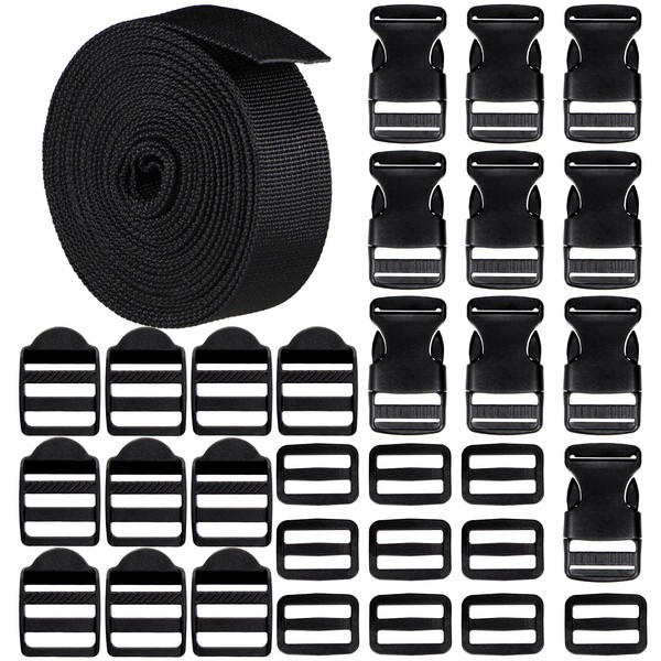• Product packaging: you will receive 1 black backpack luggage straps 5 m x 2.5 cm / 196.85 x 0.98 inches, 10 flat side buckles, 10 triple sliders, 10 trapezoidal slider closures. Nylon webbing with buckles can be used for DIY projects, sufficient for daily use.