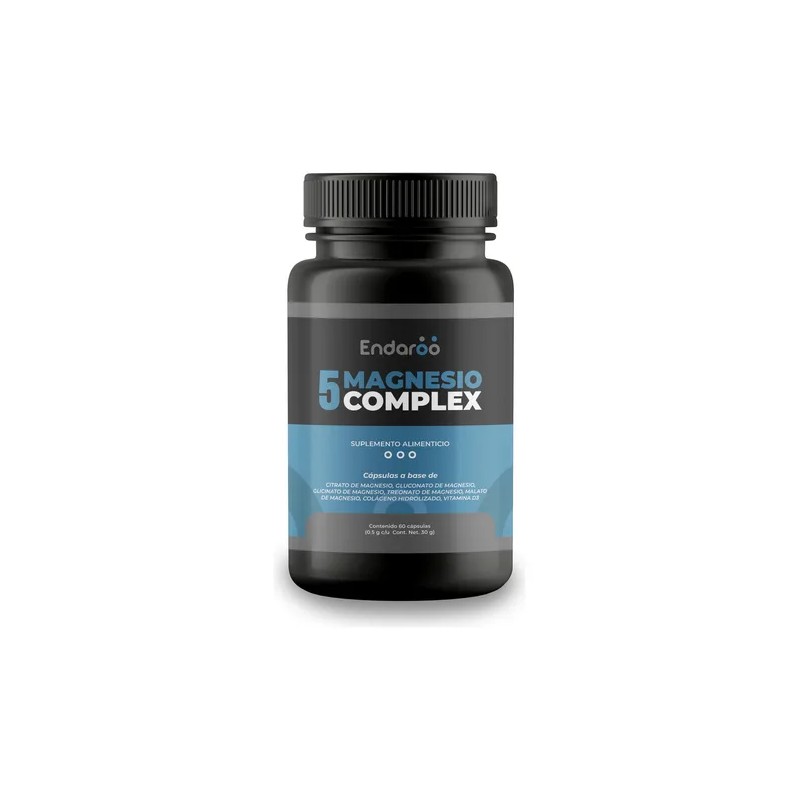 5 Magnesios: Citrato de Magnesio, Glicinato de Magnesio, Treonato, Malato, Gluconato | + Colageno hidrolizado Y Vitamina D3 | Magnesio Complex | 60 Cápsulas