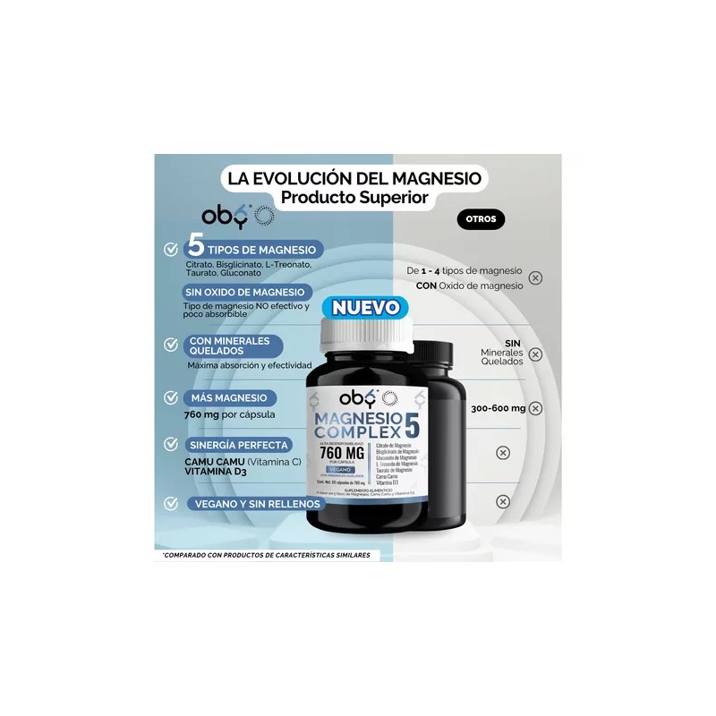 NUEVO Oby Multi Magnesio Complex – 5 Magnesios de Máxima Concentración, Absorción y Biodisponibilidad por cápsula! La evolución del Magnesio.