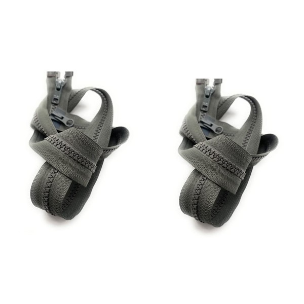 #5 Molded Vislon YKK Jacket 2-Way Separating Zipper - Choose Your Length - Color: Slate Grey #K076 - Made in The United States (2 Zippers Per Pack) (Slate Grey - 16" Inches)