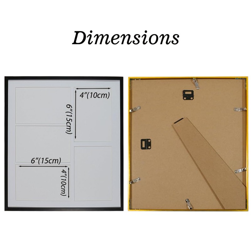 - Collage Frame Size – The overall frame size measures 13.4 x 15.4 inch (34 x 39 cm) , Inner frame measures 12.5 x 14.5 inch (32 x 37 cm) and features 5 openings to display 4 x 6inch photo.