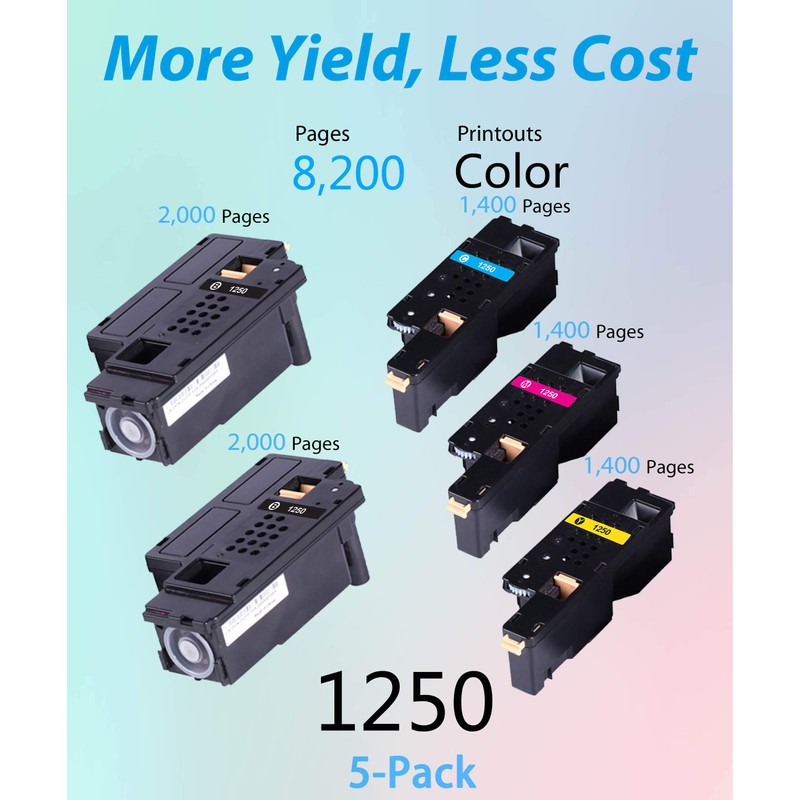 - High Page Yield: Dell 810WH 1250C Black Toner:2,000pages Dell 810WH 1250C Color Toner:1,400page