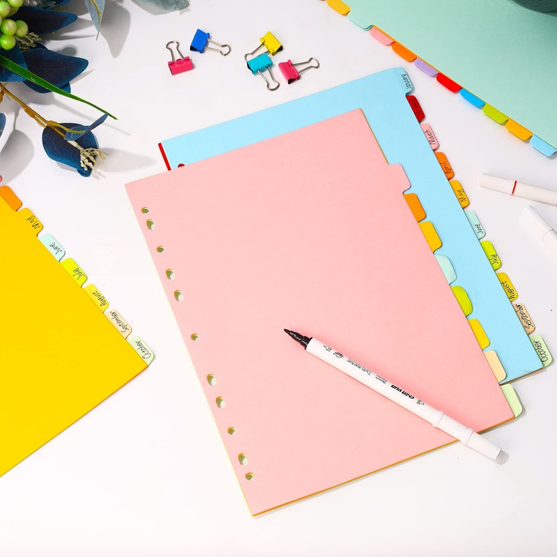 - The A4 size file divider has pre-punched 11 holes and wider holes to fit most 2/3/4 ring binders and fits easily into a binder.