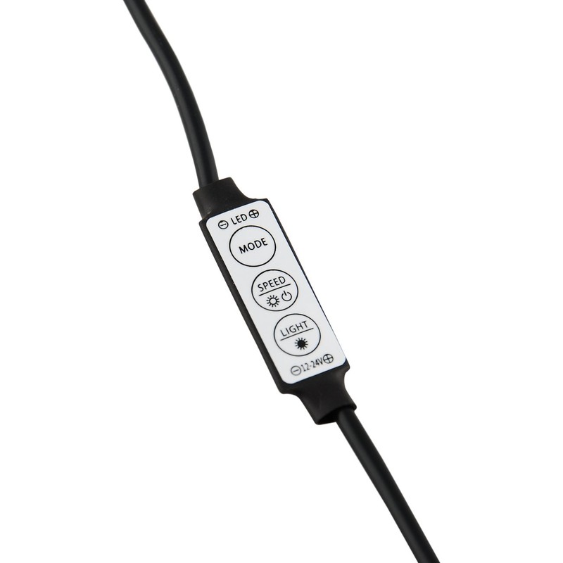 Instructions: Hold the middle button for 2 seconds to turn on/off • Press the bottom button (LIGHT) to enable static mode, when in static mode the middle button cycles through 8 levels of brightness • Press the top button (MODE) to enable dynamic mode, when in dynamic mode the top button switches between 8 dynamic effect modes and the middle button switches between 10 available speeds for the dynamic effect