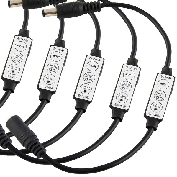 (5 Pack) ABI Low-profile Inline Dimmer Controller Switch for Single Color LED Strip Light