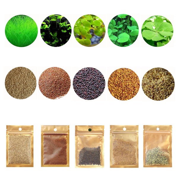 • Aquarium plant set: 5 bags inside,0.36oz of calf hair +0.36oz of mini leaf + 0.36oz oflove grass+ 0.36oz Clover+ 0.36oz heart-shaped grass. Easy to grow. Creat a lively underwater world for the fishes