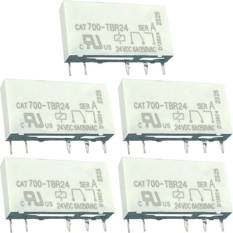 5-Pack CAT700-TBR24 Relays - 24VDC 6A/250VAC 5-Pin SPDT Relay Set - Compatible with Industrial Controls, HVAC Systems & Appliance Panels (Replaces G5LE-14)