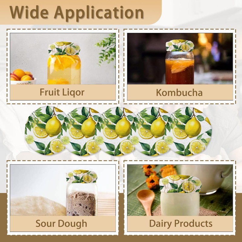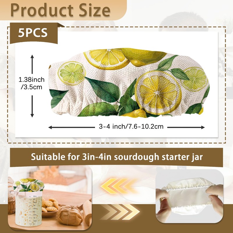 5-Pack Cloth Covers for Sourdough Starter Jars, Lemon Sunshine Reusable Lids for Bread Fermentation, Fits 3-4 Inch Mouths