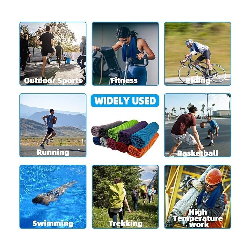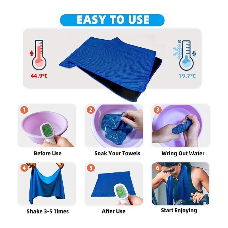 - INSTANT COOLING - Cooling towel is made of super ice hyper-evaporative breathable material, working on the physical evaporation of moisture. The unique cooling system uses moisture from the towel to draw the sweat away from your skin to keep you cool. Everyone can use the cooling towel, even pets