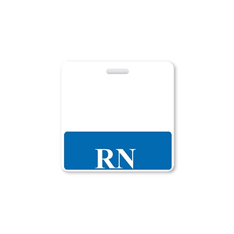 5 Pack - Horizontal RN Badge Buddies for Nurses with Blue Border - Heavy Duty Spill Proof & Tear Resistant - Double Sided - Printed in USA - by Specialist ID