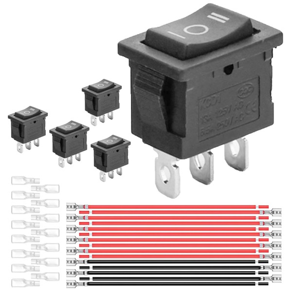 5-Pack Rocker Toggle Switch with Wire, ON/Off/ON SPDT 3Pin Boat Switches for Home Auto Car Marine Boat, KCD1-103, Black