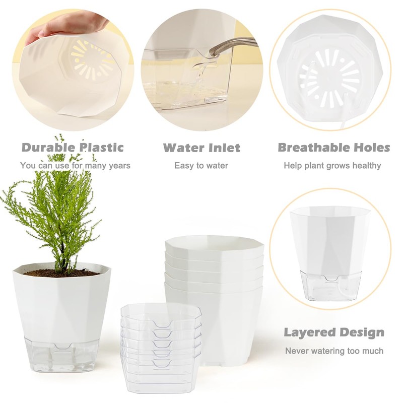 - High-quality Plastic Material: Made with durable plastic to resist daily wear and a variety of weather conditions, suitable for both indoor and outdoor use. You can use these self watering plant pots for many years.