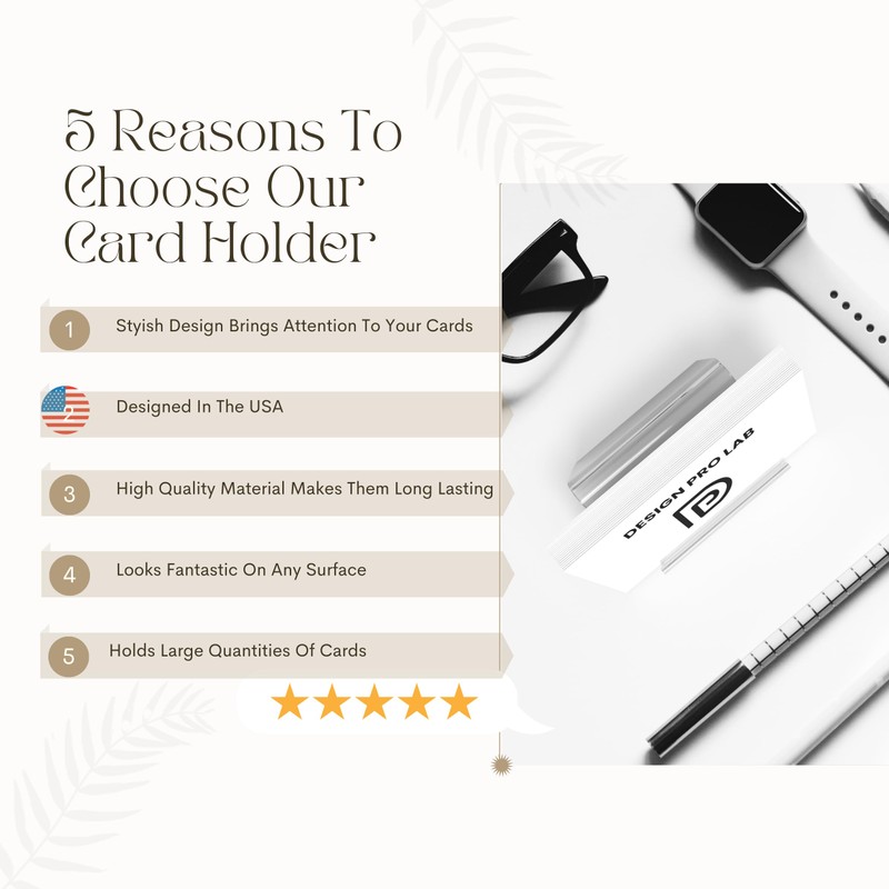 5 Pack Stylish Business Card Holder for Desk, Stylish Design, Quality Acrylic Business Card Display Desktop Office Holder 5 Business Cards