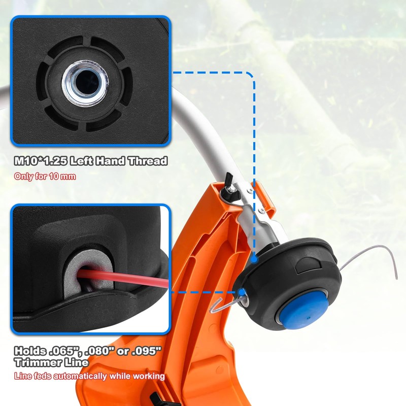 - 【FEATURE】The product has a split design that can holds 0.065-inch, 0.080-inch or 0.095-inch gauge trimmer line and universal fit 10 mm x 1.25 mm left-hand thread arbor