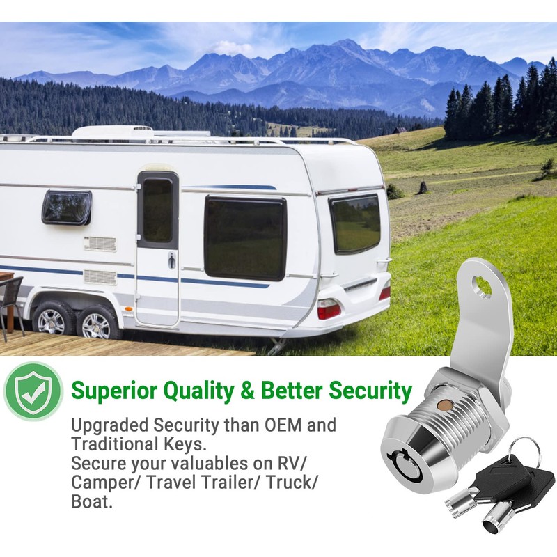 - 【PREMIUM QUALITY】RV compartment locks are made of premium zinc alloy, strong material makes it sturdy and durable for long-life time service. Rustproof & waterproof chrome plating protect the lock body to handle harsh outdoors. Tubular cam locks adopted advanced lock technology, keep your valuables safe and help you travel worry free with loved ones.