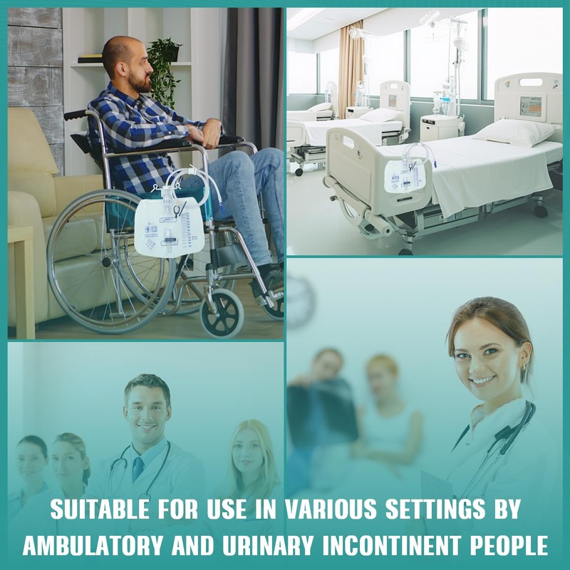 - 【Easy to Use】: Catheter Bags with clear graduation marks for easy- to-read.Hook and hanging rope on the bag fits securely onto a bedrail or wheelchair; the drain valve can be operated with one hand, which is convenient and practical